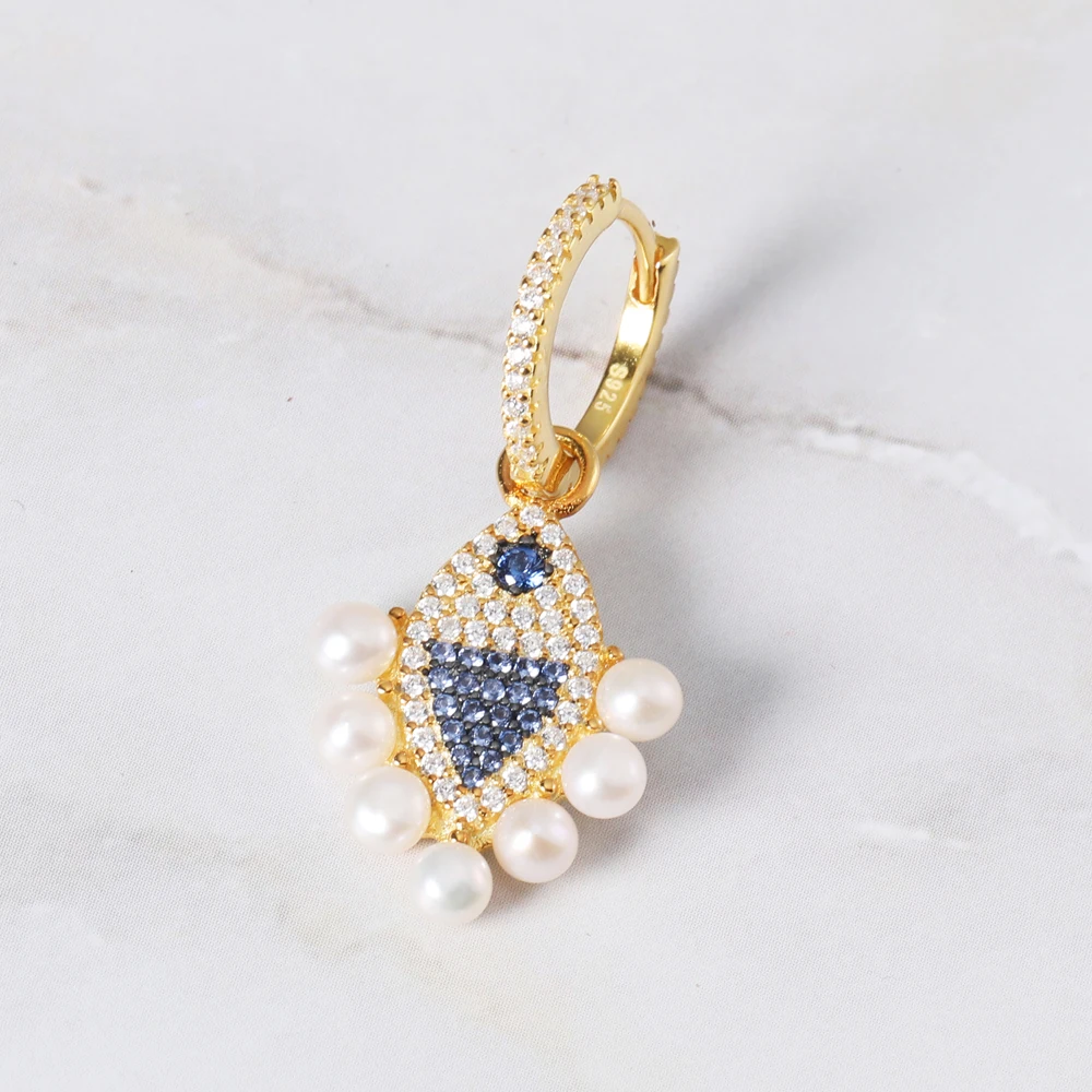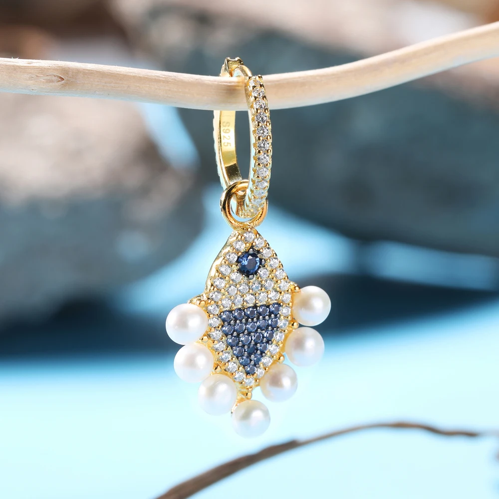 TOP 2019 Fashion Fish Earrings For Women 925 Silver Crystal Earrings Seven Large Pearls Hoop Earrings B