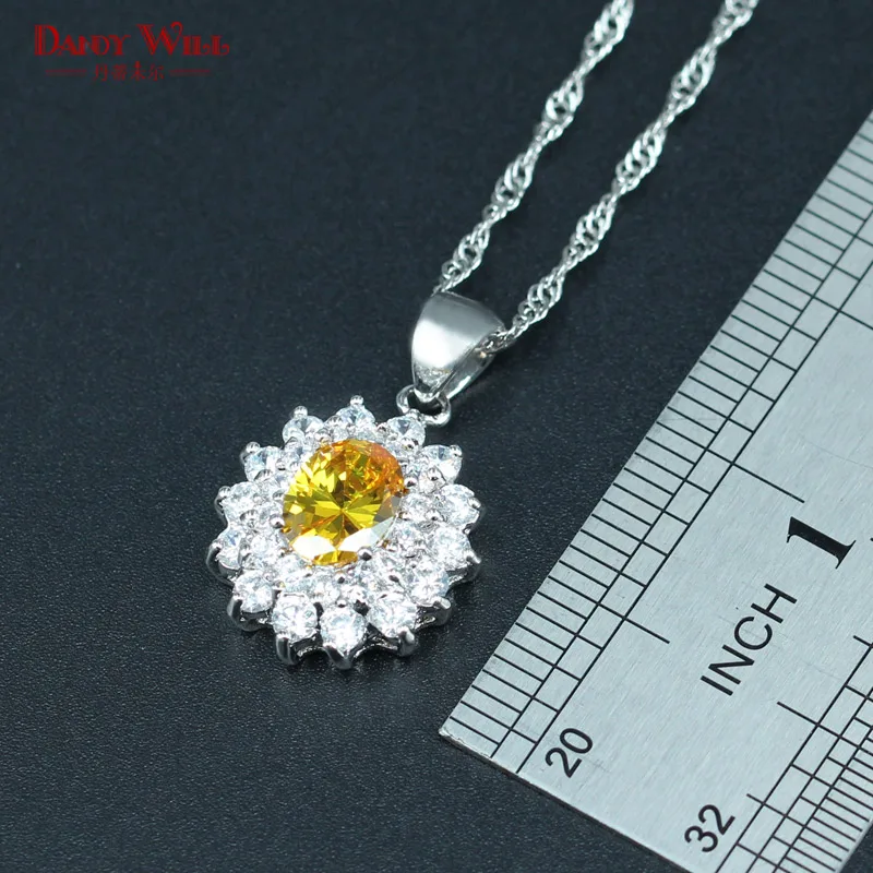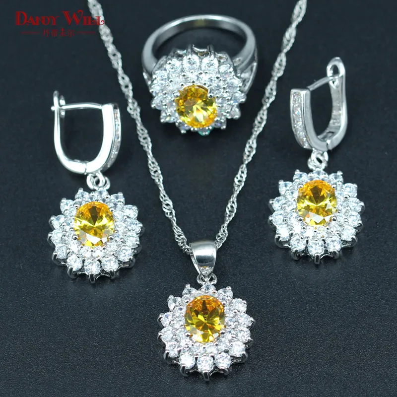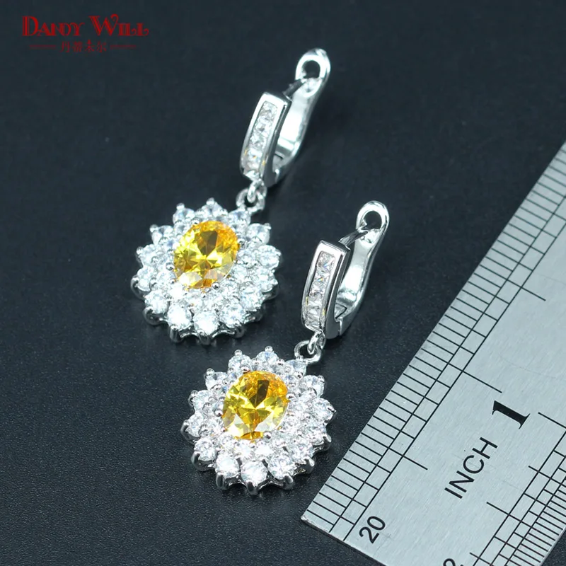 DANDY WILL Fancy Bridal Jewelry Set For Women Wedding Yellow Cubic Zirconia Silver color Pendant/Ne