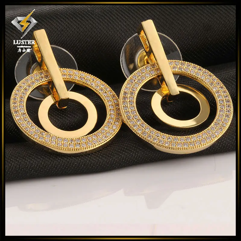 Best Quality 2016 Fashion Individual Big Concentrically Round Stud Earrings Gold/Rhodium Plated for Women Gifts