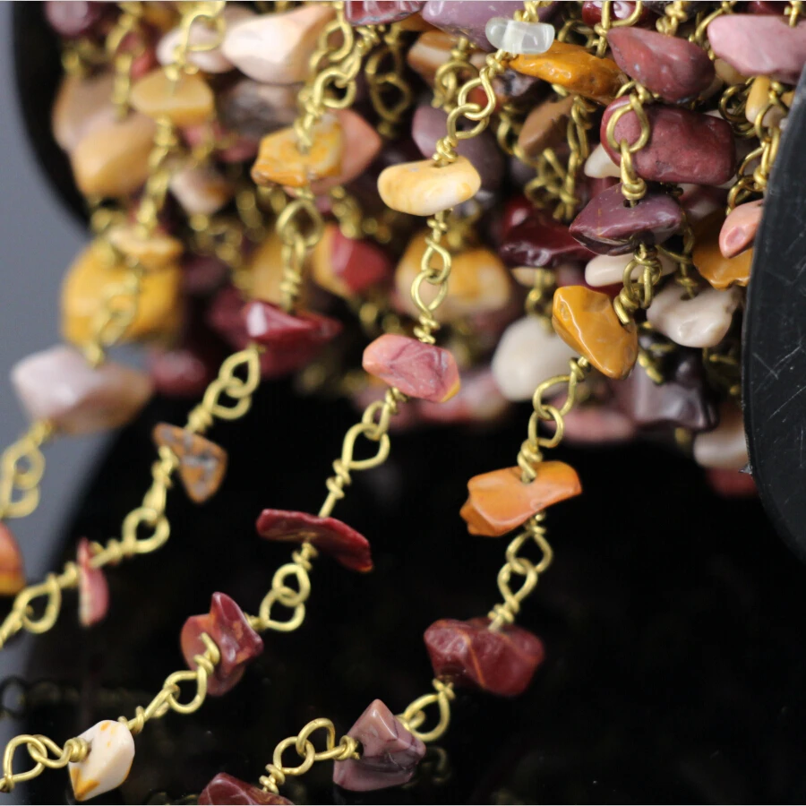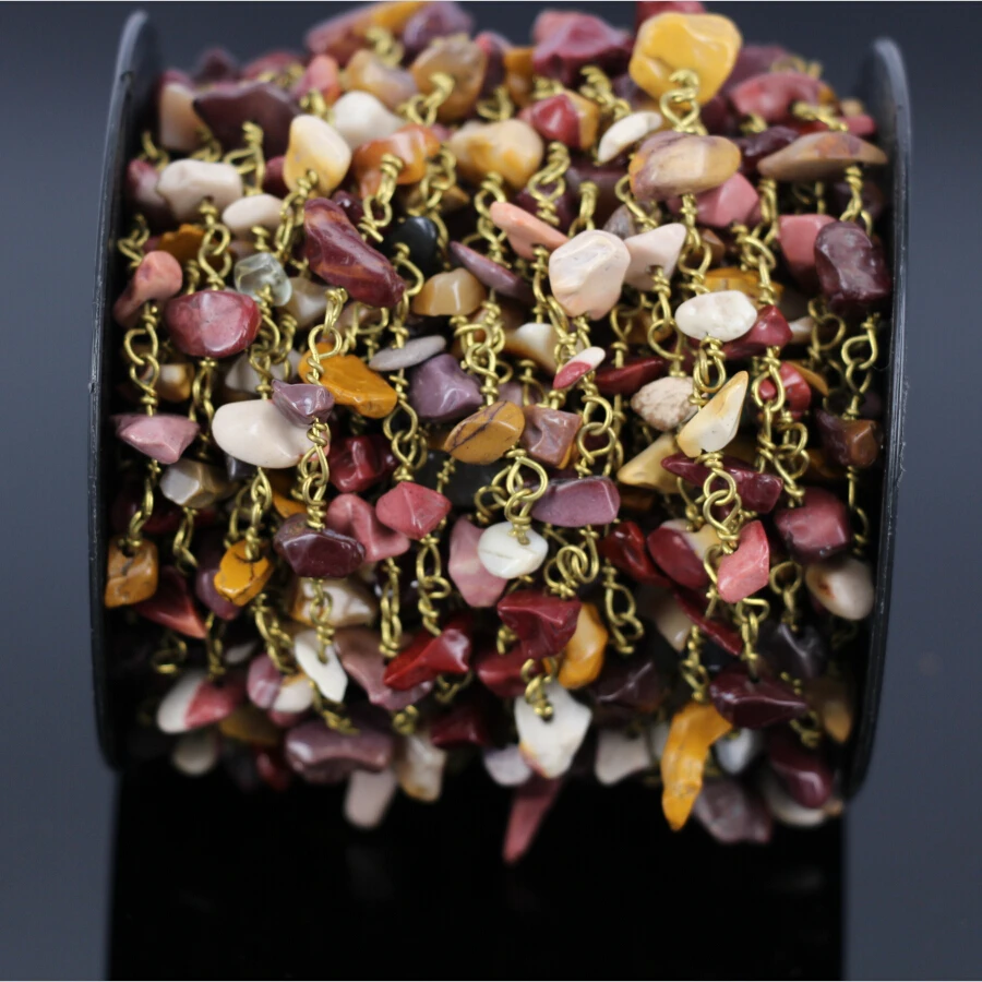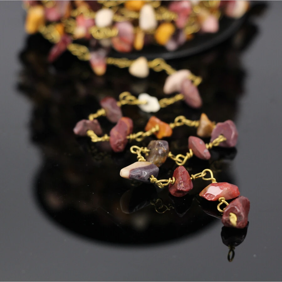 5MeterNatural Mookaite stone Chip ChainGold Plated Brass Wire Wrapped Rosary Chains Necklace bracel