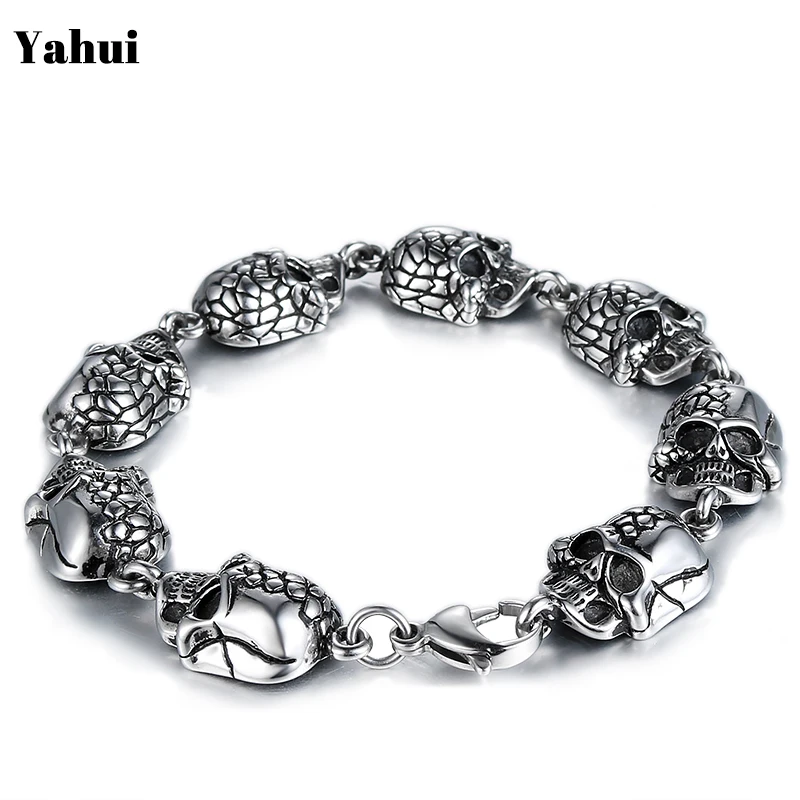 HIGH QUALITY YaHui stainless steel men's biker bracelet stainless steel skull bracelet fashion jewelry gifts for