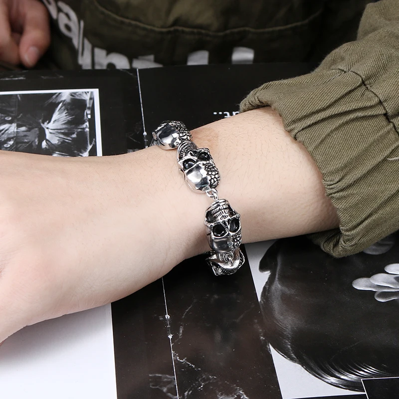 YaHui stainless steel men's biker bracelet stainless steel skull bracelet fashion jewelry gifts for