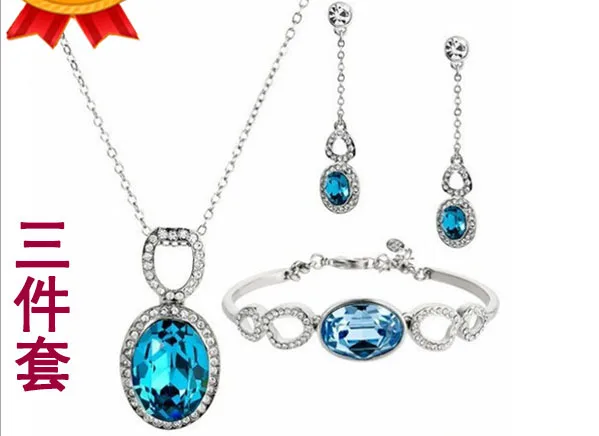 S925 Sterling Silver Crystal Jewelry SetFashion Silver necklace earring and bracelet For Woman can