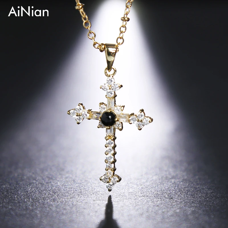 Druzy Shiny Cross Rhinestone Pendant Necklace For Woman Sweet Simple Collar Girls Choker Femme Chai