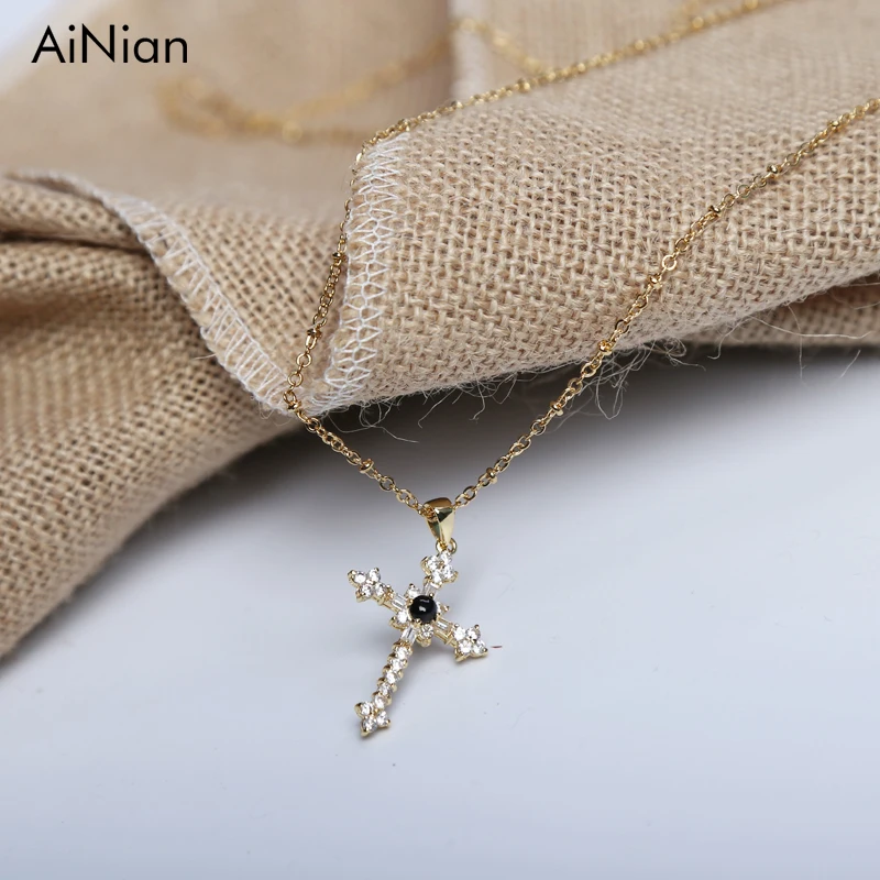 Hot Sale Druzy Shiny Cross Rhinestone Pendant Necklace For Woman Sweet Simple Collar Girls Choker Femme Chai