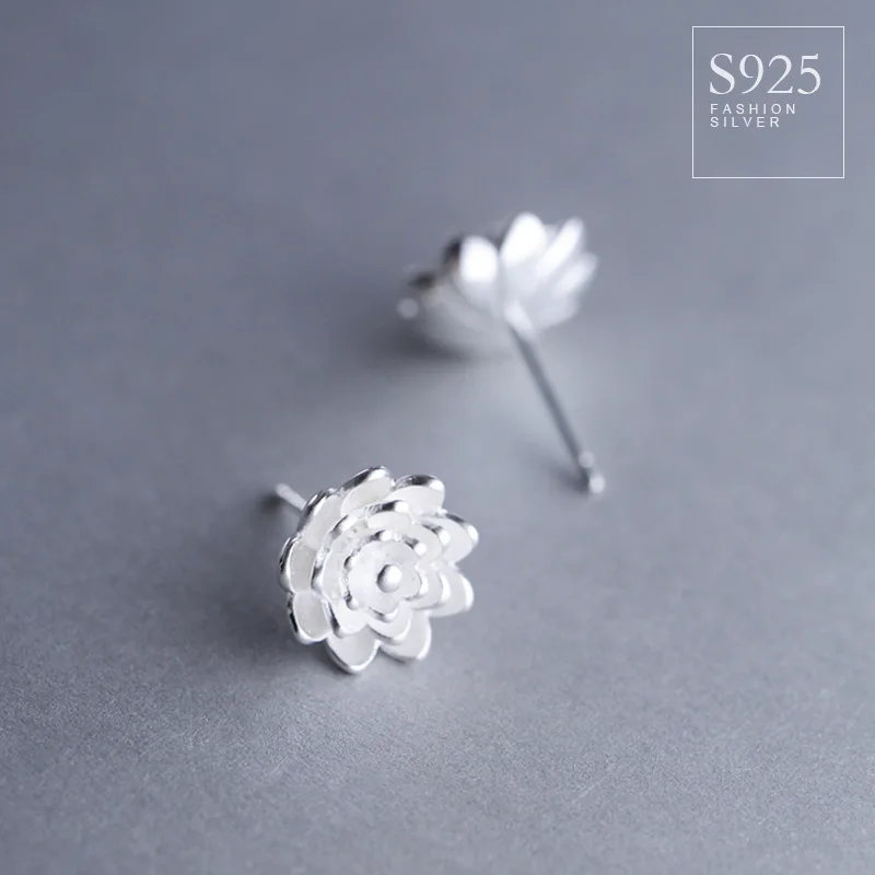 ORIGINAL 925 pure white fungus nail small lotus flower female handmade jewelry anti allergic temperament for