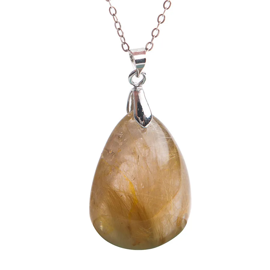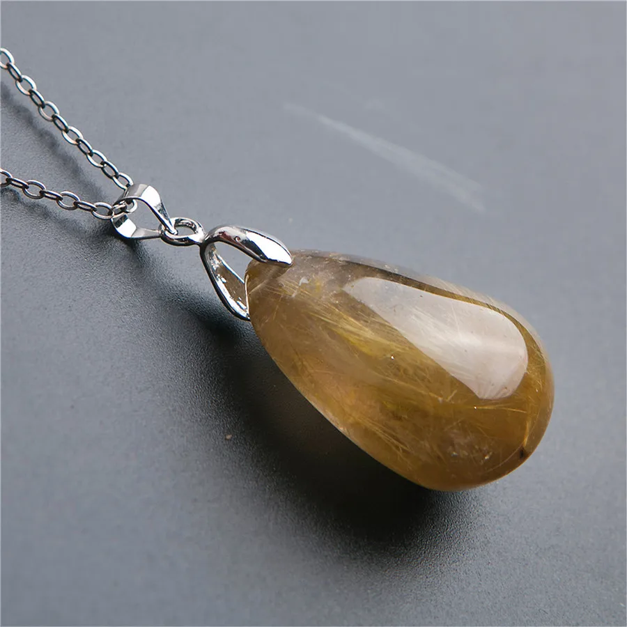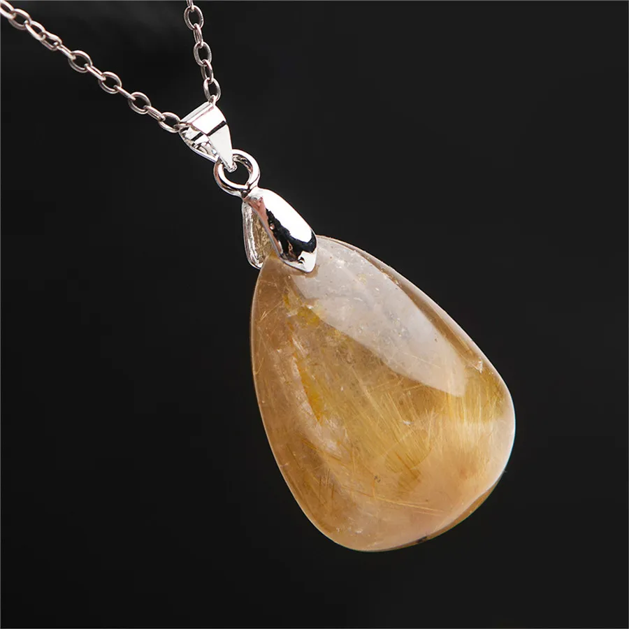 ORIGINAL Natural Gold Rutilated Quartz Crystal Gem Pendant Fashion Jewelry Warter Drop Shape Charm Pendants