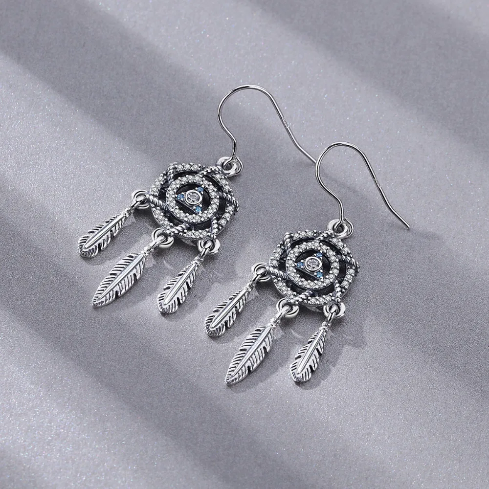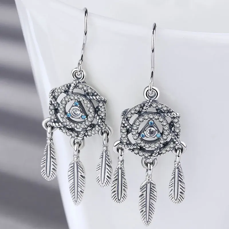 TOP Angel Caller Fashion 925 Sterling Silver Dream Catcher Drop Earrings for Women Vintage Sterling Sil