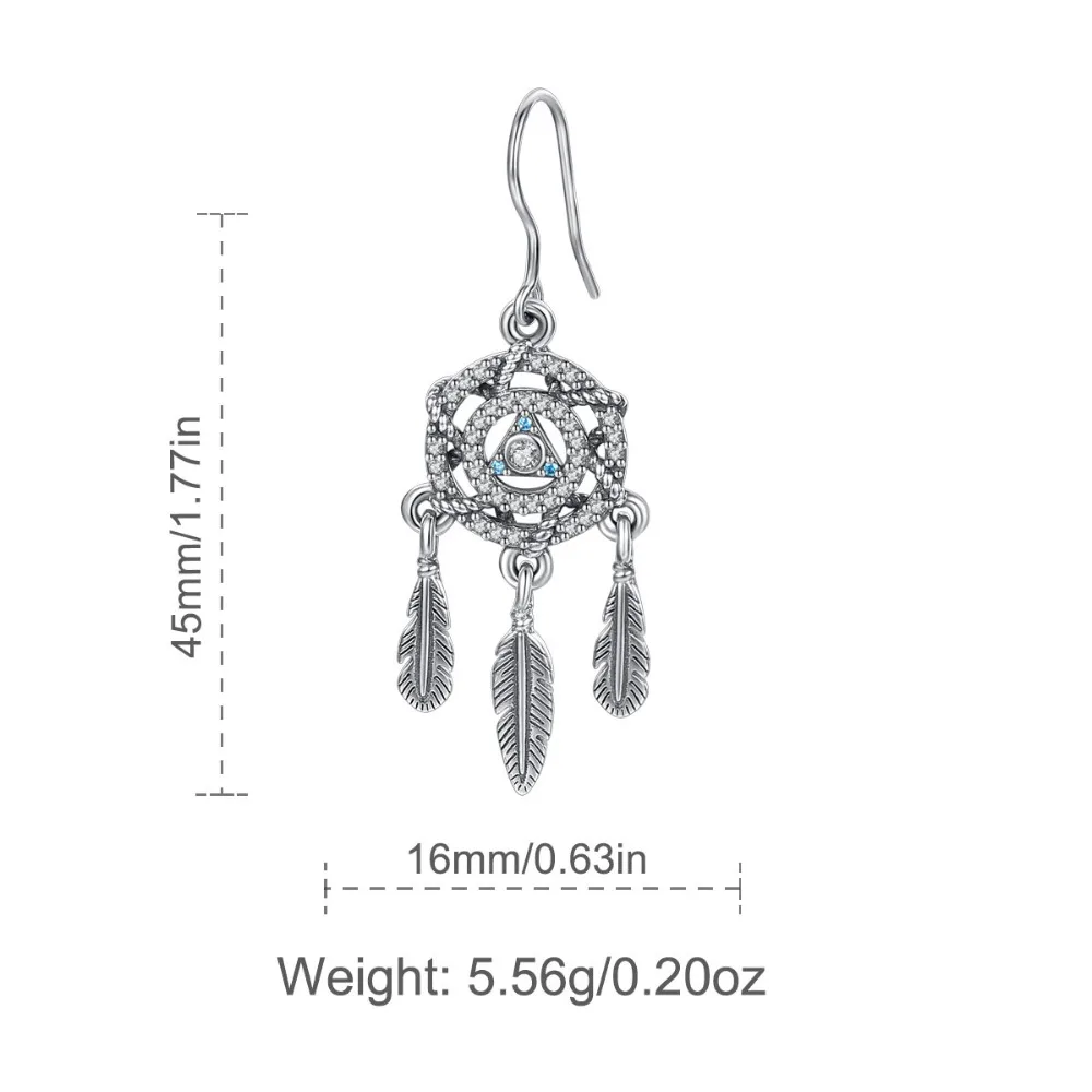 Angel Caller Fashion 925 Sterling Silver Dream Catcher Drop Earrings for Women Vintage Sterling Sil