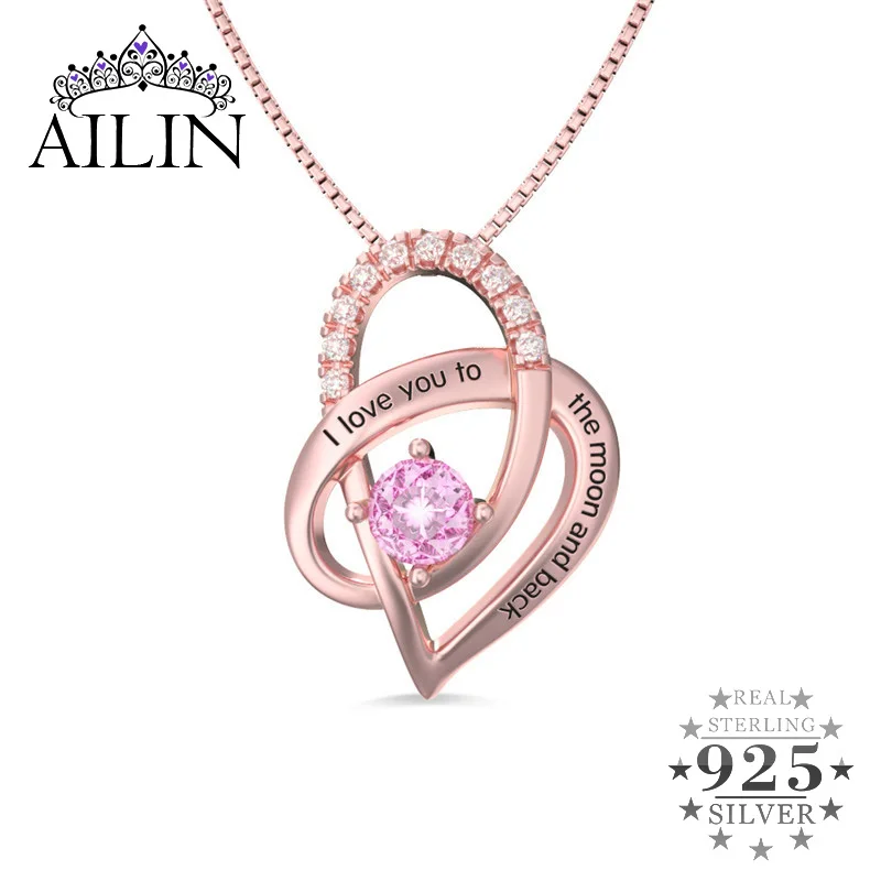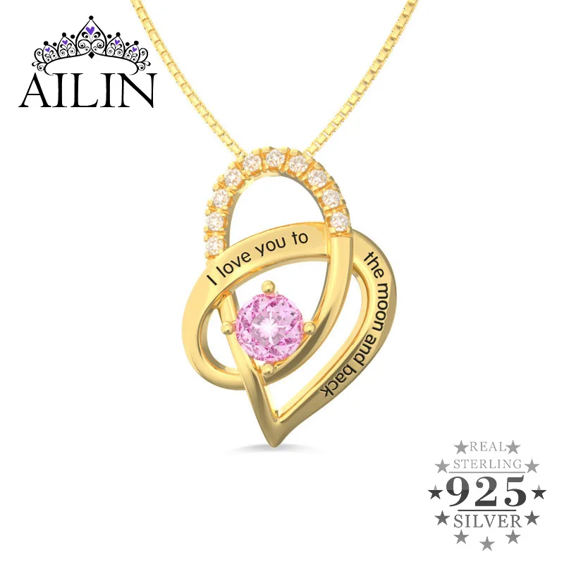 TOP Wholesale Birthstone Necklace Gold Color Heart Pendant Gold Color Love Jewelry For Her